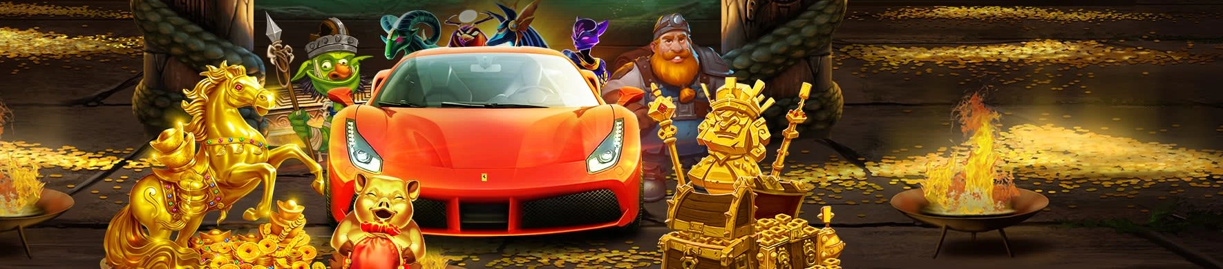 Our VIP program rewards loyal players with unique gifts. There are ten levels, starting with Amateur and ending with Godlike. Every bet earns comp points that move you up the ladder. At higher levels, players enjoy cash bonuses, free spins, personal VIP managers, and even real luxury items. The top prize is a Ferrari 488 GTB, given to the ultimate Godlike VIP player.